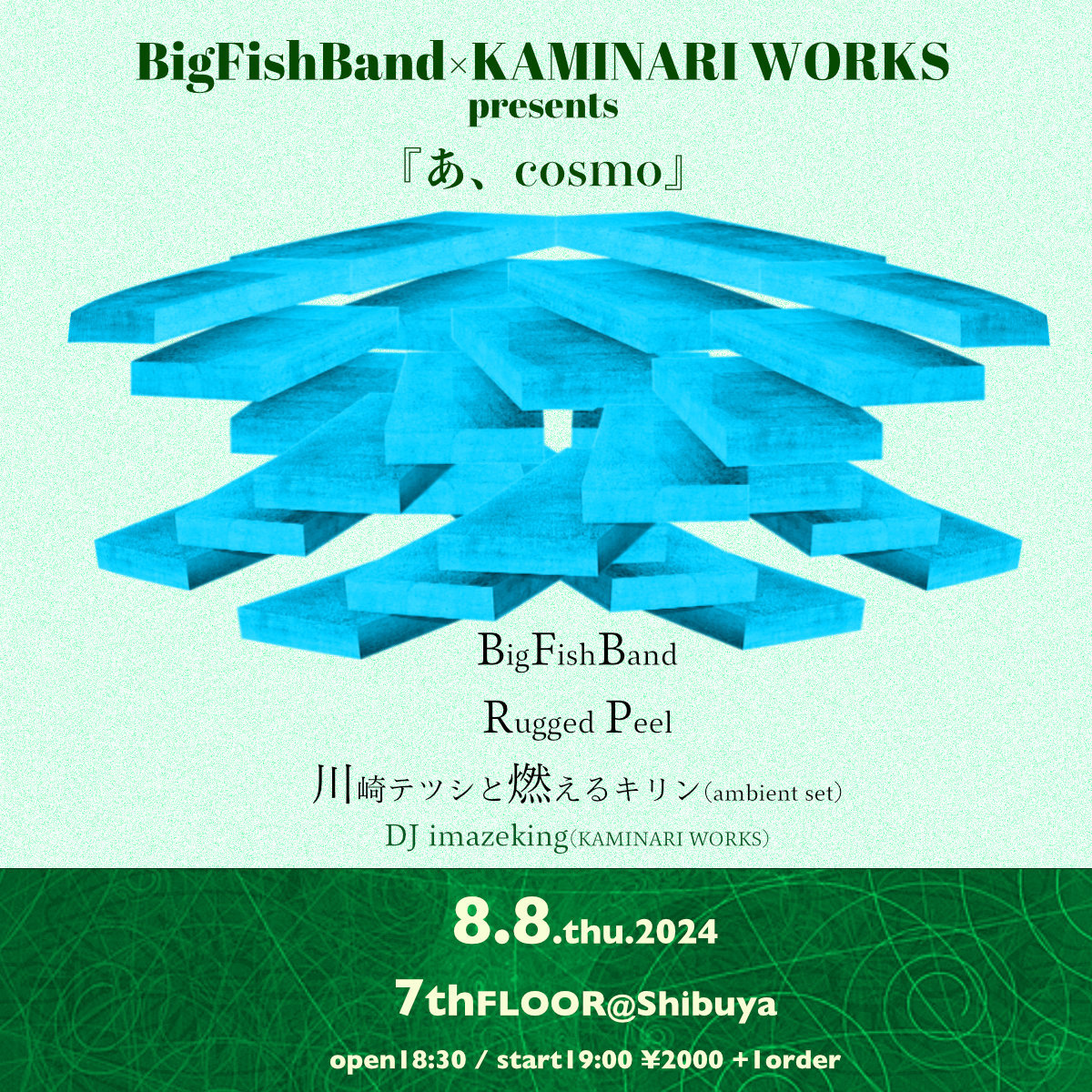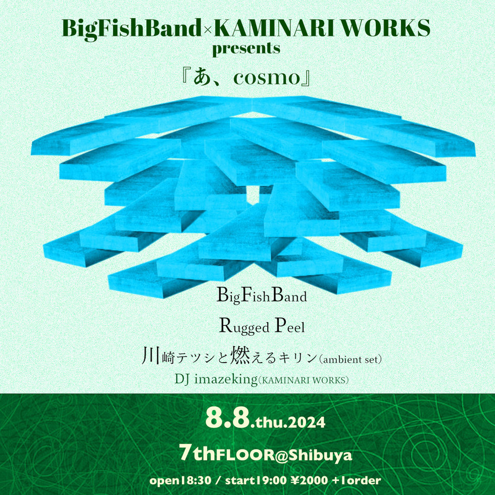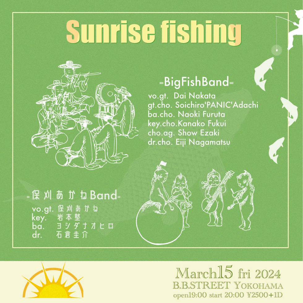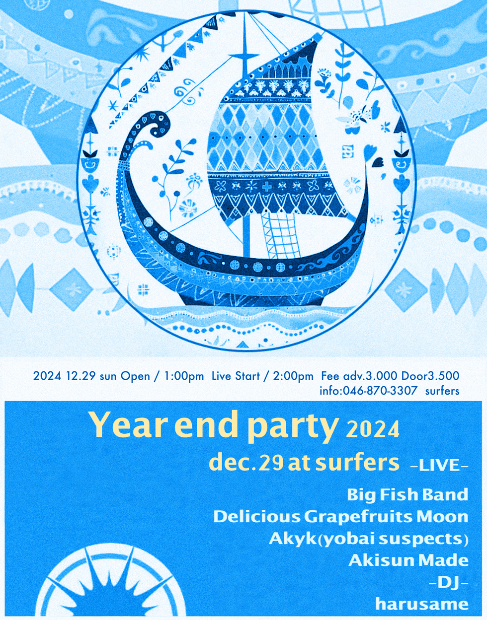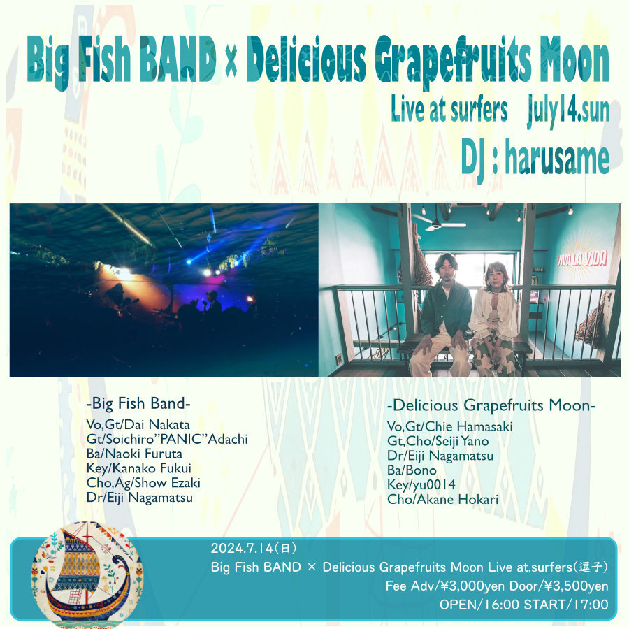 BigFishBand 大きな魚が跳ねて 水面に出来た大きな波紋 広がる音吸い込まれる世界 愛の大きさを知らずに食べてしまった魚たち Gt.Vo. Dai Nakata Gt.Cho. Soichiro 'PANIC' Adachi Ba.Cho. Naoki Furuta Key.Cho .Kanako Fukui Dr.Cho. Eiji Nagamatsu LIVE SHOW 11.23.2025.Sun.茅ヶ崎 FROGGIES BigFishBandone man show LIVE-BigFishBand- open19:00 start20:00charge¥3000 Past Date